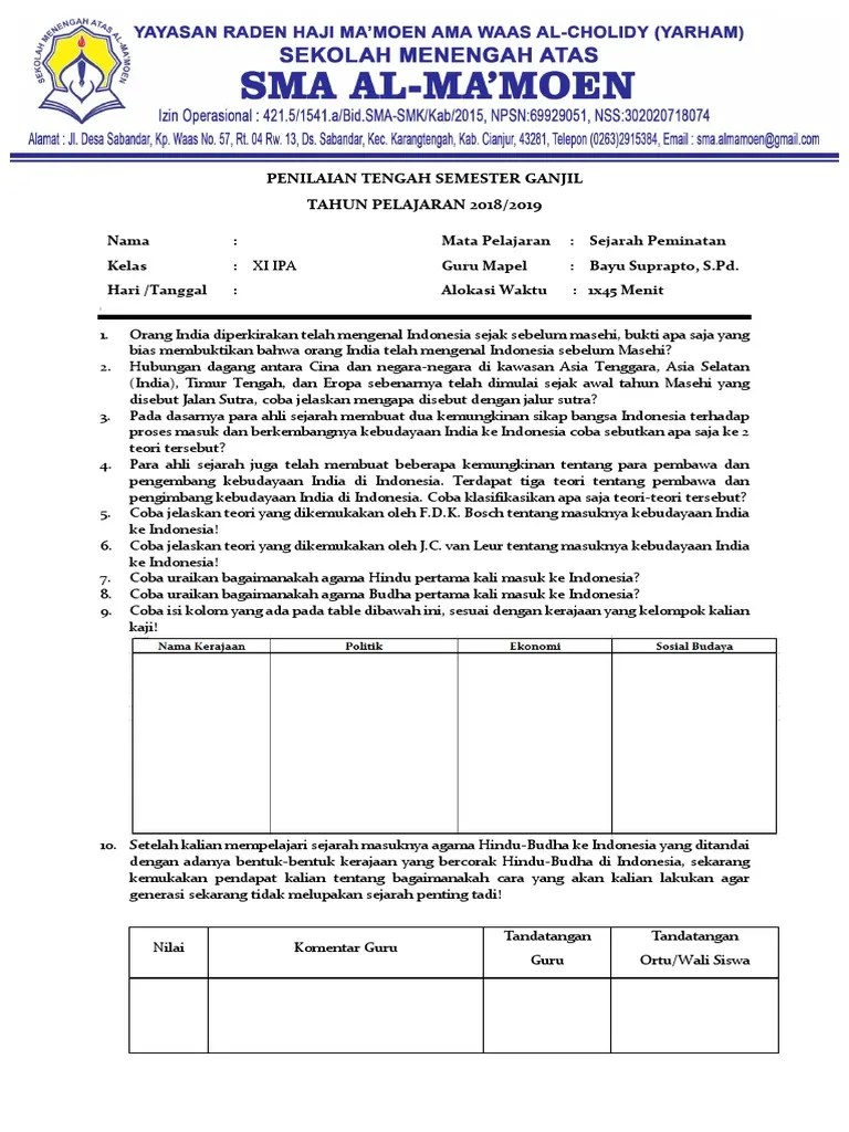 Contoh soal ukk sejarah dan jawaban kelas xi ipa.